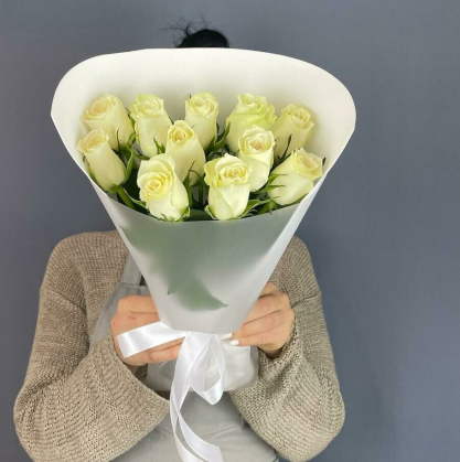Купить букет из 11 белых кенийских роз в Краснодаре
